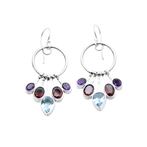 • Genuine Amethyst, Blue Topaz, and Garnet gemstones