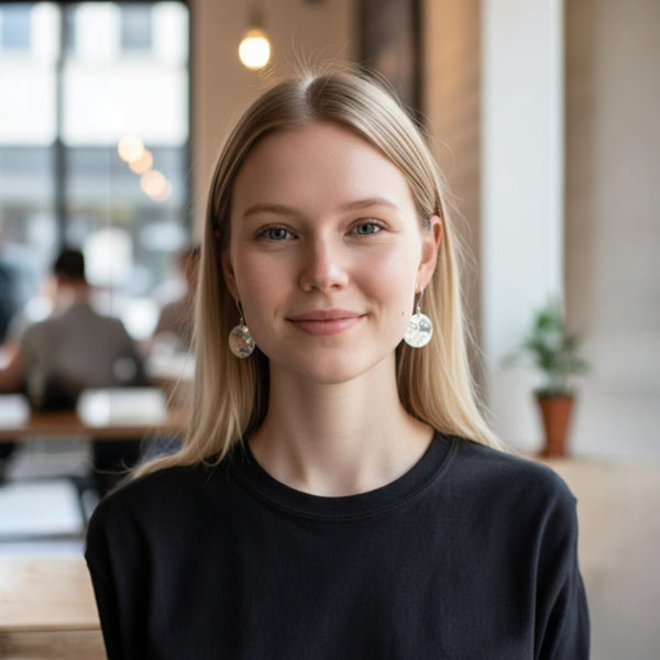 Minimalist yet full of meaning, these earrings are for the woman who embraces her evolution — who knows that even when life feels divided, her light always finds its way back. Elegant enough for an evening out yet timeless for daily wear, they whisper grace through every curve.